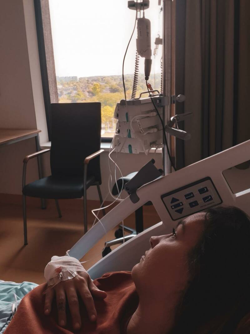 Toen ik aan de beurt was bij de apotheek en aan de balie stond te wachten op mijn medicatie kreeg ik het bloedheet en werd licht in mijn hoofd. De apothekersassistent en mama begeleiden me naar een stoel en de onwel verpleegkundige werd gebeld. Nooit van gehoord! Vrij snel stond ze naast me mijn bloeddruk te meten, suikers te meten en dextro te voeren. Aangezien de pijn alleen maar erger werd belde ze de uroloog en mocht ik terug naar de poli. Daar werd ik opgevangen en mocht ik op datzelfde behandeltafeltje gaan liggen als ik 30 minuten geleden lag. Het duurde niet lang voor ik moest braken en ik helemaal in mezelf keerde. In de ogen van mijn moeder zag ik angst, geen idee wat ze moest doen en wat er nu weer was. Geen woord kon ik meer uitbrengen ik kon mezelf alleen maar rustig houden door me te focussen op mijn ademhaling. Een zetpil werd gezet maar deze mocht niet baten. Ik deed het niet maar van binnen schreeuwde ik het uit van de pijn. Het duurde lang en steeds kwam er wel een uroloog of verpleegkundige kijken. Ze hadden dit ook niet zo ingeschat en konden alleen niet veel doen als afwachten tot de pijn zou zakken en de zetpil zou werken. Ik werd er niet veel vriendelijker op. Na twee uur werd eindelijk besloten dat ik opgenomen moest worden en mocht ik met een rolstoel naar de afdeling en het belangrijkste; kon ik fatsoenlijke pijnmedicatie krijgen. Ik was niet vriendelijker geworden zei ik al hè? Hoe ik dit duidelijk heb gemaakt weet ik niet meer maar uiteindelijk kwam er een bed om mij op te halen. Die helse pijn was doodstil liggend op een bed al niet te verdragen, laat staan zittend in een rolstoel het ziekenhuis door.